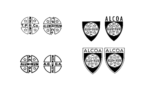| Assorted Alcoa symbols used in the first half of the 20th century. |